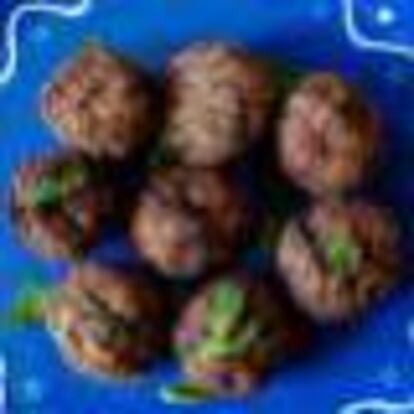 La berenjena asada da a estas albóndigas una cremosidad fantástica, a la vez que contrarresta la contundencia del cordero