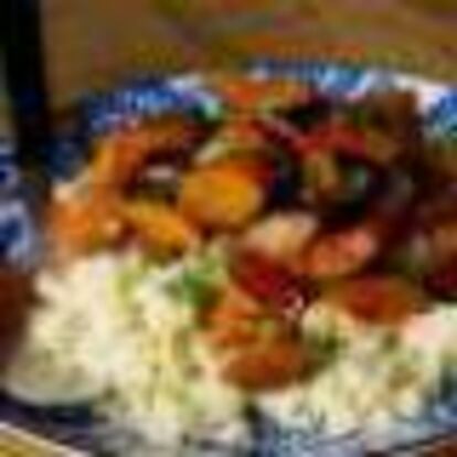 Las berenjenas cremosas y agridulces no pueden encontrar mejor compañero que el arroz con cardamomo y semillas de cilantro.