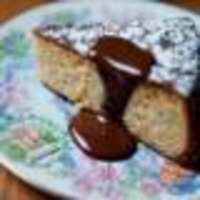 PASTEL DE MANDARINA Y ALMENDRA CON SALSA DE CHOCOLATE