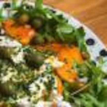Las ensaladas de invierno son la bomba. Prueba esta con rúcula, caqui persimon y burrata y descubre lo bien que combinan estos tres ingredientes.