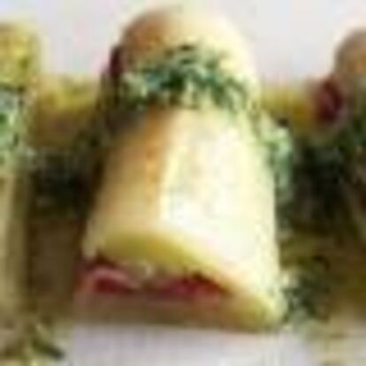 PUERROS RELLENOS DE CECINA CON VINAGRETA DE PESTO