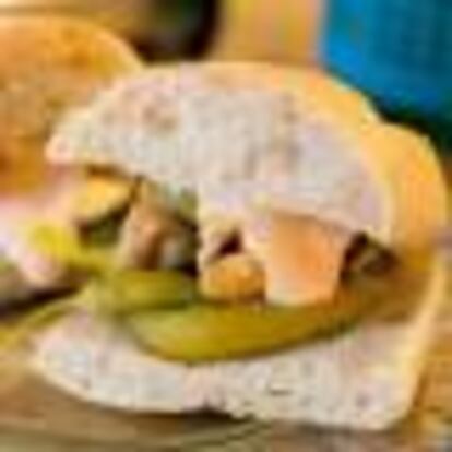 BOCADILLO DE GUINDILLAS Y MEJILLONES CON MAYONESA DE PIMENTÓN