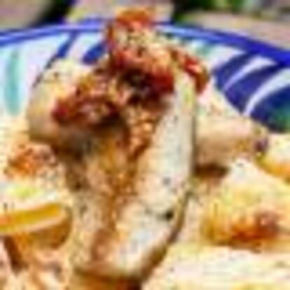 RIGATONI CON CABALLA Y AJOS CONFITADOS