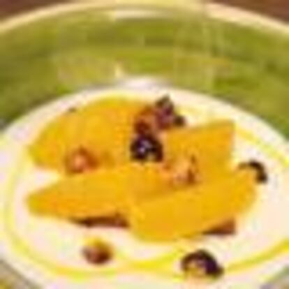 SOPA DULCE DE QUESO CON NARANJA Y AVELLANAS