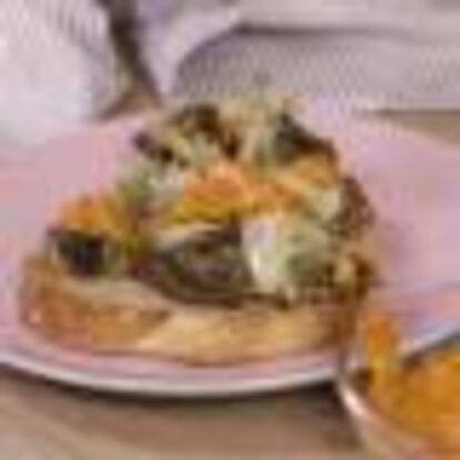 TOSTADAS DE ALCACHOFAS ASADAS CON ROMESCO