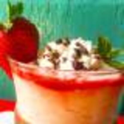 Rendimos homenaje a las ochenteras fresas con nata, expulsadas del paraíso por culpa de la nata de espray, con esta mousse con poquísimo azúcar añadido y un toque de chocolate.