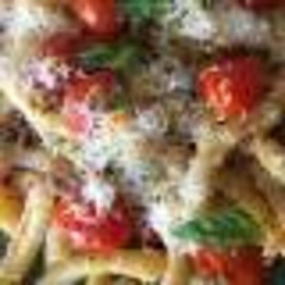 Si preparas el mismo plato con los tomates crudos, tendrías una ensalada de pasta. Pero nos quedamos con esta versión caliente, con los tomates jugosos y ligeramente caramelizados.