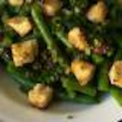 ENSALADA DE JUDÍAS VERDES CON PICATOSTES Y VINAGRETA DE ACEITUNAS