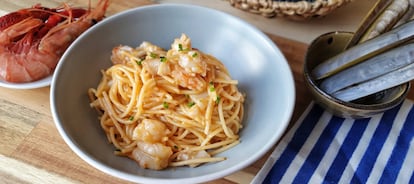 La 'carbomare' es una versión de este clásico italiano que sustituye el guanciale por ingredientes como navajas y gambones. Rematan un aceite aromatizado con sus cabezas y la cremosidad de la yema de huevo.
