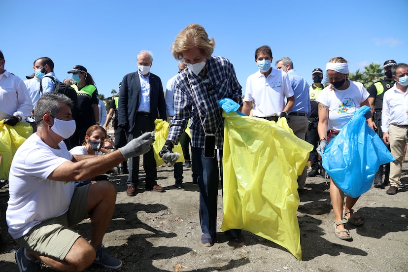 La reina Sofía colabora en la limpieza de una playa en Málaga