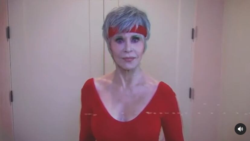 La estética del vídeo recuerda a aquellos VHS que dieron fama a Fonda en tantos hogares hace unas décadas, ayudando a millones de personas en todo el mundo a hacer ejercicio. En realidad, las imágenes son una mezcla de aquellas antiguas cintas y de una llamada de Zoom, donde los famosos ocupan cada uno su pequeño cuadradito de la llamada.