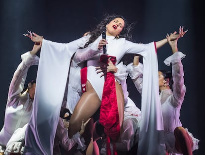 Es cierto que 2020 no ha traído el esperado nuevo disco de Rosalía, tal y como se venía especulando desde 2019. Un álbum sobre el que fuentes discográficas cercanas a la cantante dicen a este periódico que sigue trabajando, pero “sin fecha”. Más aún cuando por la pandemia, aseguran, todos los planes se han ido trastocando sobre la marcha desde el pasado marzo. Por tanto, 2021 es imprevisible, aunque la cantante no ha dejado de crear nuevo material y de moverse dentro de Estados Unidos. Se fue a Los Ángeles para juntarse a The Weekend, a Nueva York para la llamativa portada de Vogue y en Miami ya cuenta con un lugar propio fuera de la casa de su manager para componer y grabar. No tiene planes de regresar a España. Y sí muchas cosas por hacer en EE UU. No solo musicales: siguen esperando marcas y patrocinios asociados a su nombre, amplificado por el inmenso altavoz de sus redes sociales. Así que, si algo ha confirmado el 2020 con respecto a Rosalía, la chica de San Esteban de Sasroviras que tuvo una epifanía al escuchar a Camarón de la Isla, es lo que le pasa a toda estrella mundial: ya es también patrimonio del mercado estadounidense.