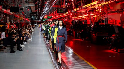 Este domingo, ante la mirada de popes del diseño con mayúsculas —Jony Ive, creador de los más importantes dispositivos de Apple, o Marc Newson—, Ferrari no presentó su último bólido sino una colección de moda. También estaban allí dos pilotos de este fabricante italiano de deportivos de lujo, Charles Leclerc y Carlos Sainz. Y ninguno parecía fuera de lugar: sobre una pasarela montada en la cadena de montaje de la hi...