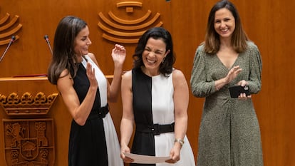 La reina Letizia coincide en el vestido con una de las premiadas en la entrega de un galardón en Extremadura
