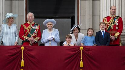Esta segunda jornada de los festejos de cuatro días por el Jubileo de Platino de Isabel II llega tras el multitudinario desfile militar del jueves, el llamado Trooping the Colours, por las calles de Londres, que dejó como estampa final el saludo de la familia real británica en el balcón del palacio de Buckingham. Allí no se dejaron ver Enrique y Meghan, puesto que solo sus miembros en activo salieron a saludar. Sin embargo, se les pudo ver de forma discreta en otras estancias de palacio gracias a algunas imágenes captadas a través de las ventanas. Hoy han querido y logrado romper esa discreción, pero sin ofrecer la foto que tantos deseaban.