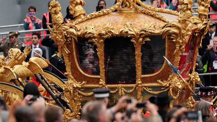Además, Isabel II estuvo también presente en el desfile celebrado el domingo a primera hora de la tarde en Londres... pero de forma virtual. La carroza dorada con la que la monarca acude a actos formales, como la apertura del Parlamento británico, se paseó por las calles de la ciudad. Y aunque ella no estaba presente, su holograma se instaló sobre las ventanas del mismo, con una imagen de la reina vestida igual que el día de su coronación y saludando. Más de uno le devolvió el saludo.
