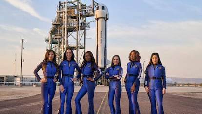 La última vez que una tripulación exclusivamente femenina viajó al espacio fue en 1963, cuando la astronauta rusa Valentina Tereshkova pilotó el Vostok 6 alrededor de la Tierra como única tripulante de la nave. Han hecho falta 62 años para repetir la hazaña este lunes 14 de abril, pero esta vez han sido seis las mujeres que han compartido la experiencia a bordo del cohete New Shepard, de la empresa espacial Blue Origin, propiedad de Jeff Bezos ―aunque poco tiene que ver la compleja misión de tres días de la rusa con este nuevo viaje anecdótico de menos de 11 minutos―. La periodista y prometida del magnate, Lauren Sanchez, ha liderado esta misión en la que ha estado acompañada de la estrella del pop Katy Perry, la periodista y presentadora de CBS Gayle King, la ingeniera aeroespacial Aisha Bowe, la activista Amanda Nguyen y la productora Kerianne Flynn.