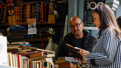 Dicen, quienes conocen del tema, que las gallinas con frío ponen menos huevos. También cuando llueve o cuando hace calor. Algo similar viven los libreros de la Cuesta de Moyano, esa feria del libro permanente al aire libre a un costado del Jardín Botánico de Madrid, que llevan un siglo capeando el temporal y diversas vicisitudes para vender sus libros. Y este año cumplen 100 años haciéndolo. Sus casetas grises resisten, estoicas, abiertas todos los días del año, siempre a la espera de algún lector o bibliófilo en busca de ediciones descatalogadas, novedades, o libros de ocasión que conviven en un meticuloso desorden. Este viernes ha llegado hasta ahí la reina Letizia para recorrer de arriba abajo los 30 puestos, en un acto más de los muchos organizados para celebrar el centenario de la cuesta, que se cumple este domingo.