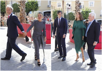 El hijo de Cayetana Fitz-James Stuart ha llegado a la cita en coche acompañado de su hija Amina, fruto de su matrimonio con la empresaria Genoveva Casanova y que ejerce de madrina. Para la ocasión, el también duque de Arjona ha vestido el uniforme de gala de la Real Maestranza de Caballería de Sevilla —sable incluido, que se ha quitado antes de entrar a la iglesia—, aquel que ya llevó en su enlace con la mexicana en octubre de 2005.
