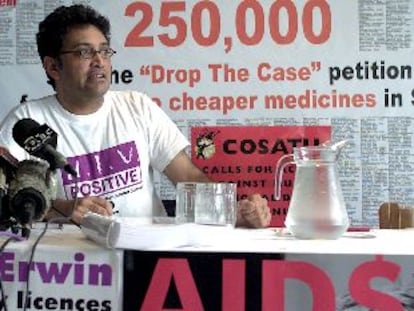 Zackie Achmat, de la organización antisida TAC, critica a las multinacionales ayer en Johanesburgo.