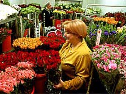 Una de las neveras de Mercabarna donde se almacenan las rosas que saldrán a la venta el día de Sant Jordi.