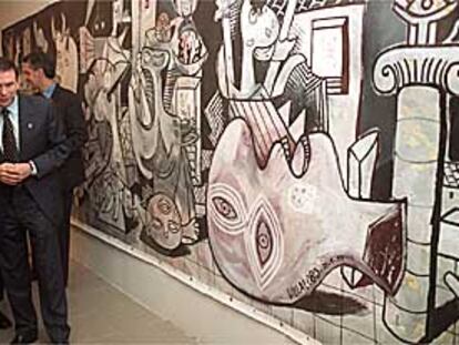 Ibarretxe, ayer en Gernika, ante una reinterpretación del cuadro de Picasso.