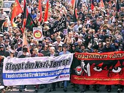 Manifestación antifascista en Düsseldorf, tras un atentado racista contra 10 inmigrantes, en agosto de 2000