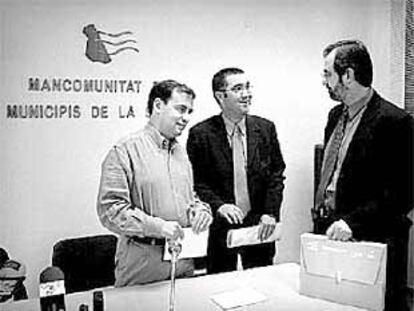 Ferran Puchades (Bloc), en el centro, y Pere Sampol (PSPM), a la derecha, ayer en Gandia.
