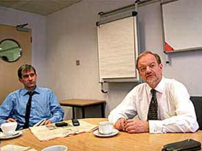 El ministro Robin Cook, en la sede laborista en Londres. A su derecha, su asesor, David Mathieson.