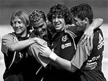 Mendieta, Juanfran, Puyol y Casillas se divierten en una sesión preparatoria