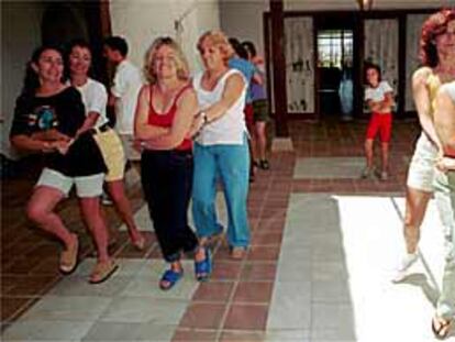 Un grupo de mujeres baila en el hotel donde pasan unas vacaciones.