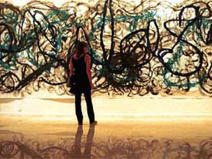 Una mujer observa una obra del artista tarraconense Manuel Chabrera.