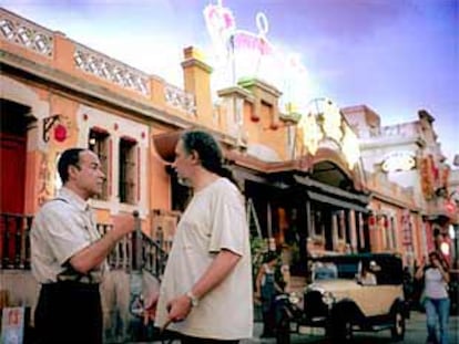 Antonio Resines y Fernando Trueba durante el rodaje de 'El embrujo de Shanghai' en Barcelona.