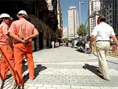 La Gran Vía estrena imagen con aceras, barandillas y farolas nuevas