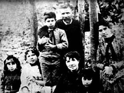 Rosalía de Castro, abajo en el centro, junto a su marido y sus hijos.