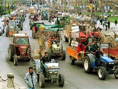 Manifestación de tractores de Unió de Pagesos en Lleida. PLANO GENERAL - ESCENA