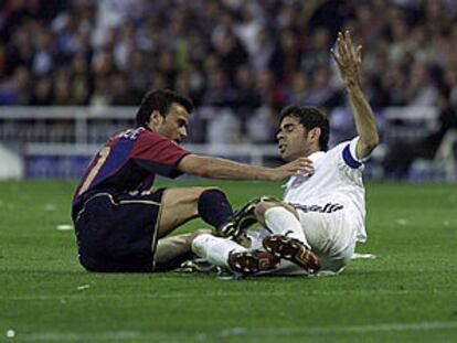 Liga de Campeones, partido de vuelta de semifinales, Real Madrid - Barcelona: Luis Enrique y Fernando Hierro en el suelo tras una caída