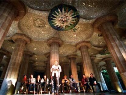 Un momento de la lectura de poemas, en el parque Güell. PLANO GENERAL - ESCENA