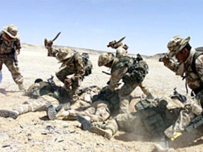 Una patrulla de gurkas, durante unas maniobras del Ejército británico en Omán