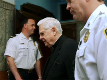 El cardenal arzobispo Bernard Law, tras prestar declaración en un caso de pederastia