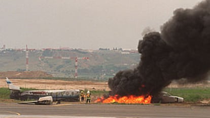 El simulacro de emergencia en el aeropuerto de Barajas, en el que se utilizó fuego real.