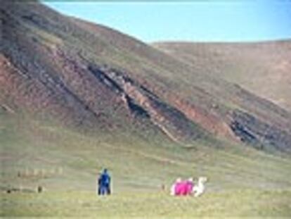 Paisaje de las vastas estepas rusas en la República de Altái. PLANO GENERAL - PAISAJE
