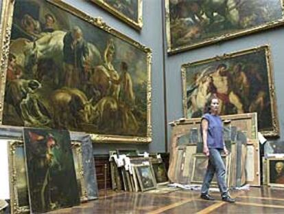 Pinacoteca del palacio Zwinger de Dresde, con varios cuadros puestos a salvo de la riada