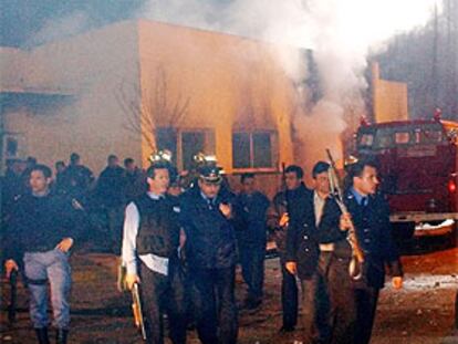 La comisaría de policía de El Jagüel, en la provincia de Buenos Aires, tras ser incendiada por manifestantes.