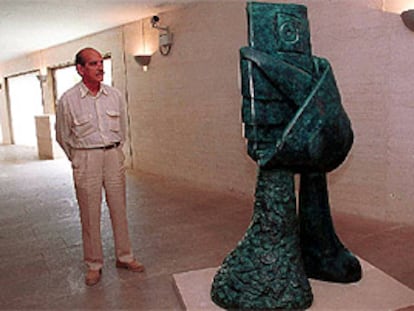 Un señor obseva la escultura deJoan Miró "Personnage servilleta", de la colección familiar.
