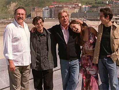De izquierda a derecha, Pedro Armendáriz, Carlos Carrera, Sancho Gracia, Ana Claudia Talacón y Andrés Montiel, ayer en San Sebastián.