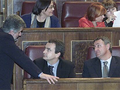 Manuel Marín con José Luis Rodríguez Zapatero y Jesús Caldera en el Congreso