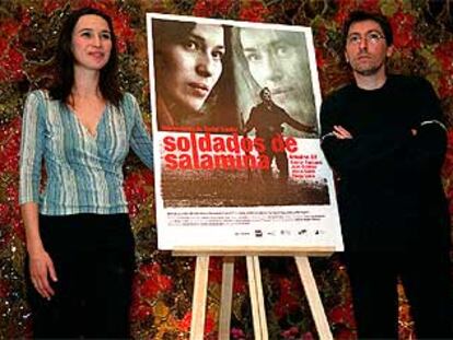Ariadna Gil y David Trueba ante el cartel de <i>Soldados de Salamina</i>