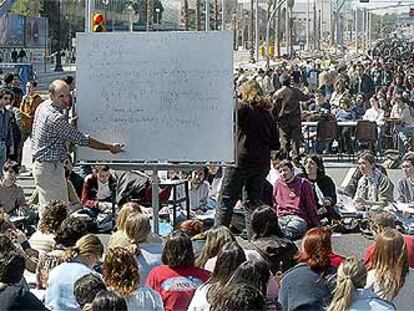 Los universitarios del campus de la Diagonal de Barcelona impartieron ayer sus clases en la calle en señal de protesta por la guerra.