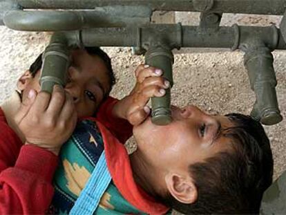 Un tanque estadounidense, frente al hotel Palestina de Bagdad